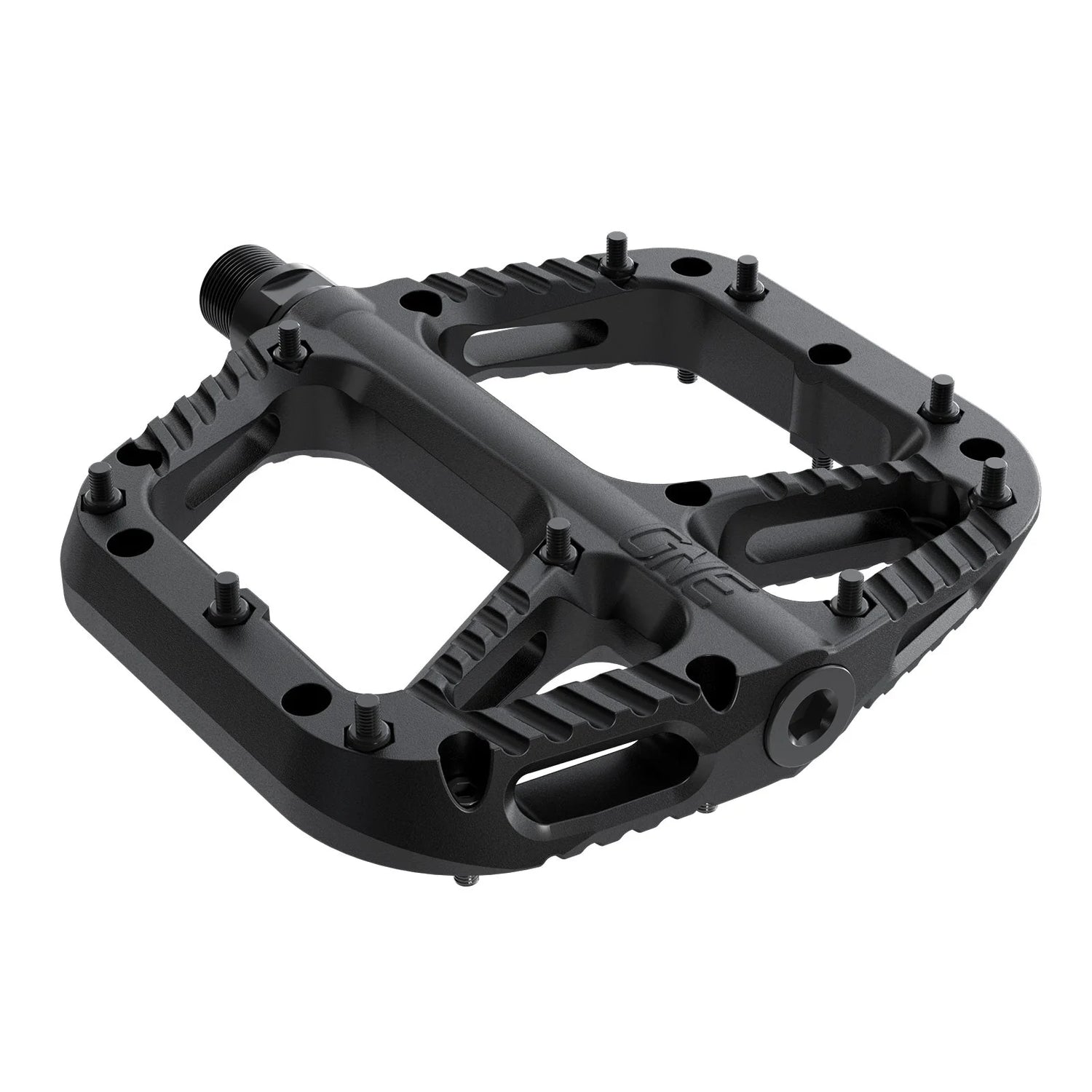 Our Composite Pedals set the standard for all mountain bike flat pedals. Their large platform, replaceable pins and slightly convex shape make a natural and secure fit under the arch of your foot.